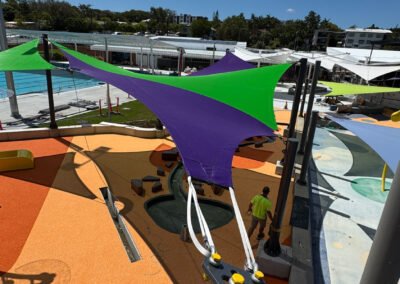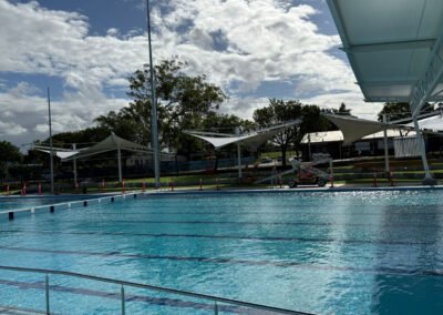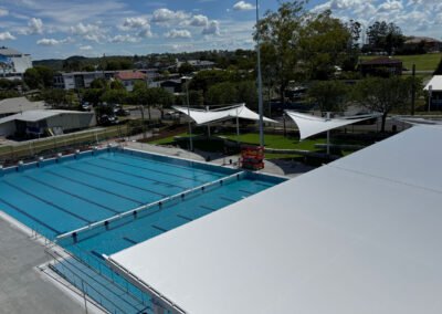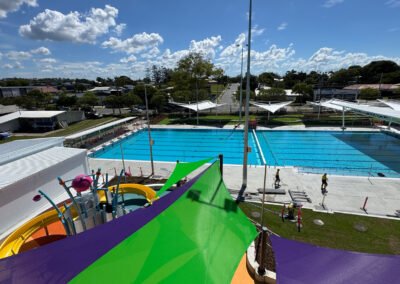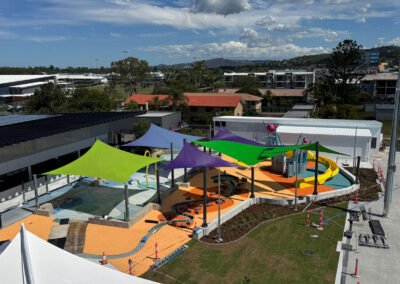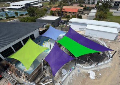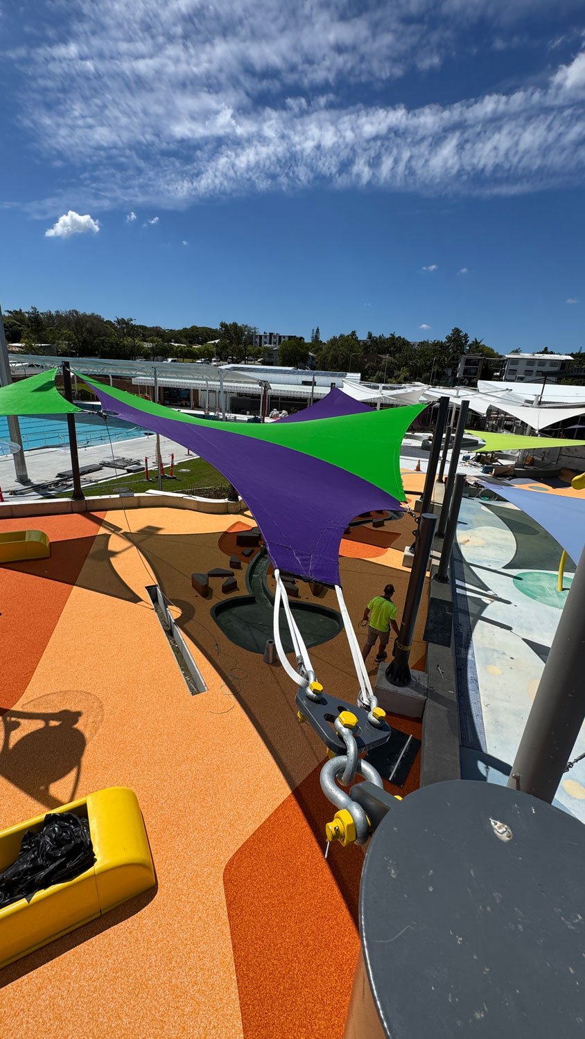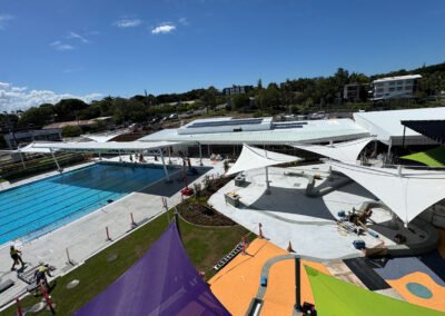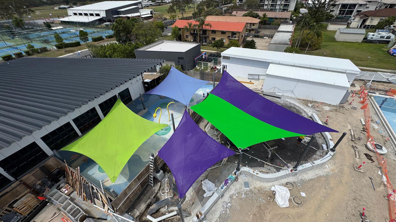 Sky Skills Industries completed the installation of premium shade sails at Beenleigh Aquatic Centre, enhancing comfort and usability for this vibrant community hub, as part of the centre’s modern redevelopment, which includes a 50m heated pool, splash park, shaded spectator seating and family-friendly recreation areas. MakMax Australia’s expertly designed shade structures provide essential protection from Queensland’s sun, creating cool, inviting spaces for visitors of all ages and abilities to relax and enjoy. Our careful installation supports the centre’s commitment to community wellbeing, creating a safer, more enjoyable outdoor environment for families, swimmers, and spectators.