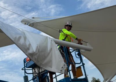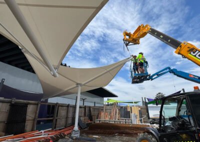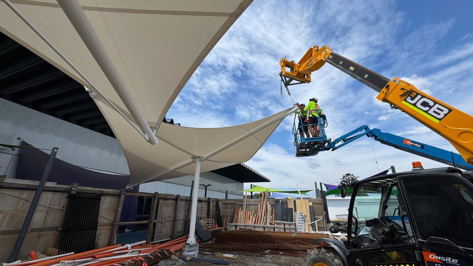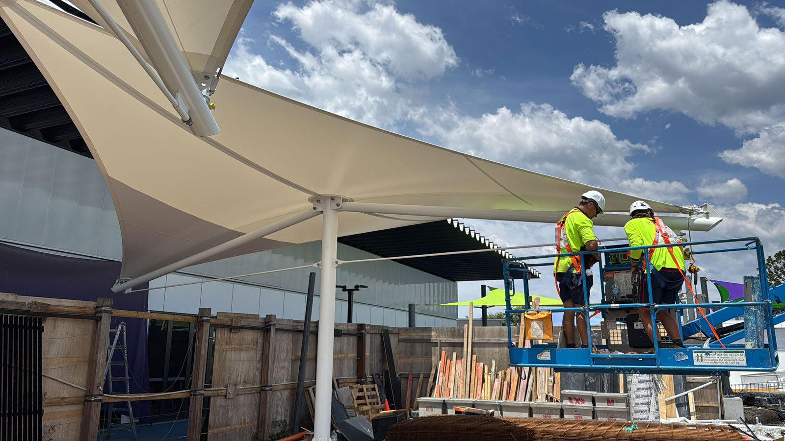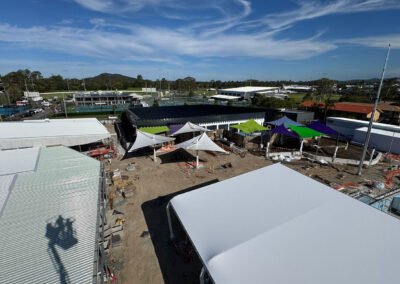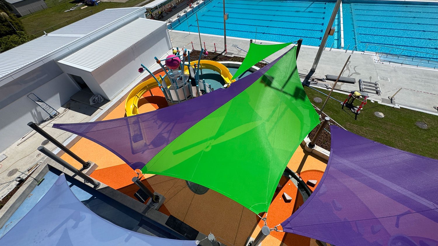Sky Skills Industries completed the installation of premium shade sails at Beenleigh Aquatic Centre, enhancing comfort and usability for this vibrant community hub, as part of the centre’s modern redevelopment, which includes a 50m heated pool, splash park, shaded spectator seating and family-friendly recreation areas. MakMax Australia’s expertly designed shade structures provide essential protection from Queensland’s sun, creating cool, inviting spaces for visitors of all ages and abilities to relax and enjoy. Our careful installation supports the centre’s commitment to community wellbeing, creating a safer, more enjoyable outdoor environment for families, swimmers, and spectators.