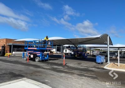 Car Park Shade Structures provide necessary protection from the elements. The most important is sun protection. In the harsh Australian Summer, car parks can reach blistering heat, and customers often choose to frequent shops and malls where shade is an option. The skills we bring to the installation of Car Park Shades are multifaceted. Sky Skills takes the time for clear communication with a focus on accommodating the client’s needs. We can do installations in a live car park and strive to work efficiently to maximize any time constraints.