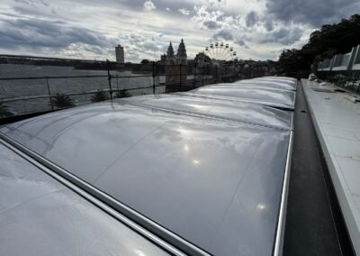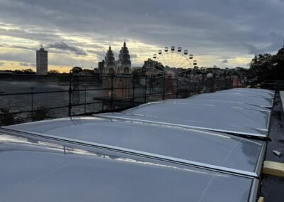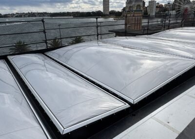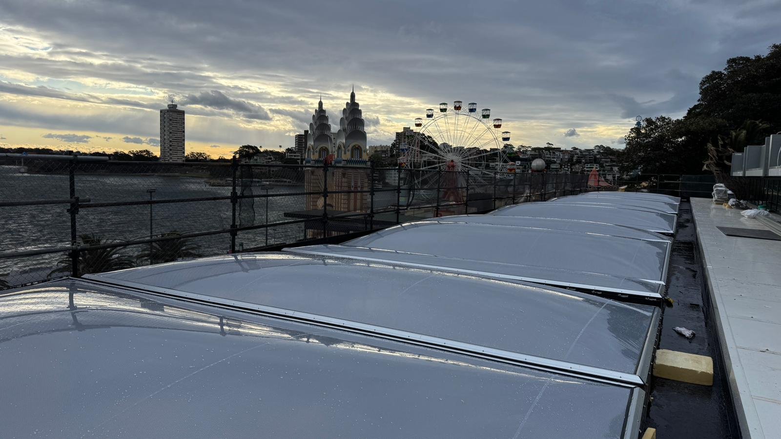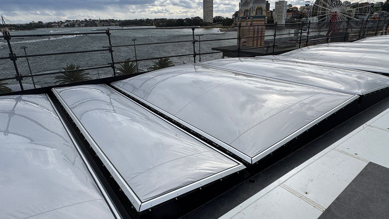 Sky Skills Industries Pty Ltd delivered the stunning new ETFE cushion roof over the iconic North Sydney Olympic Pool. Overlooking the Sydney Harbour Bridge and Luna Park, this lightweight, high-performance roofing system provides brilliant, natural light while offering all-weather protection for swimmers and visitors. The sleek, modern design complements the harbour backdrop perfectly – a showcase of innovative materials, expert installation, and world-class craftsmanship by the Sky Skills’ team.